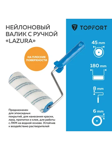 Валик малярный с ручкой TOPFORT Lazura 180 мм нейлон ворс 6 мм Topfort