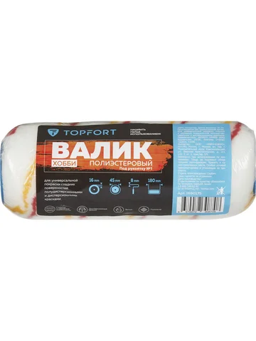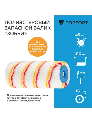 Валик малярный сменный TOPFORT Хобби 180 мм полиэстер ворс 16 мм Topfort