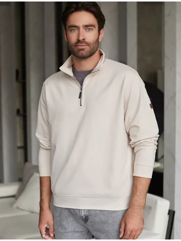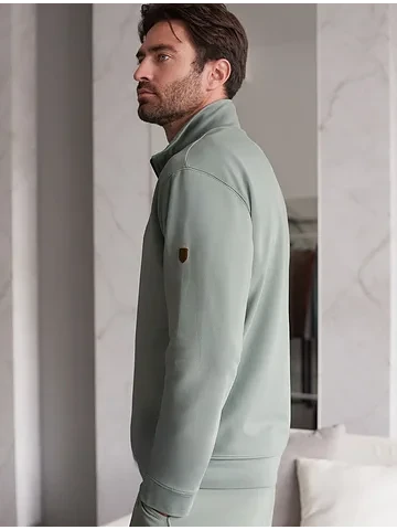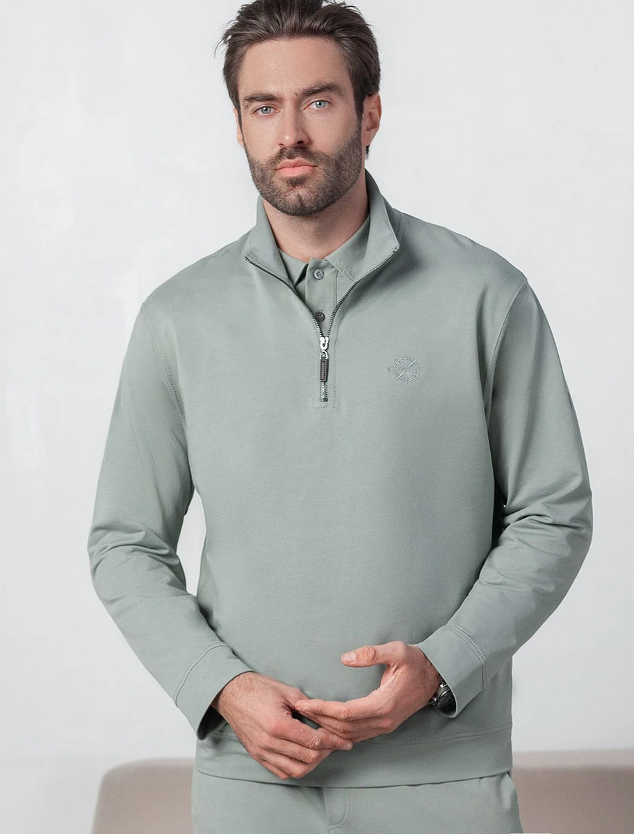 Уютный и стильный свитшот светло-оливкового цвета с воротом-стойкой на молнии - идеальный выбор для повседневного образа. Выполнен из премиального футера двухнитки с эластаном, Изнаночная сторона невероятно мягкая, что делает материал особенно приятным к телу. Благодаря эластичной структуре ткань хорошо тянется, сохраняет форму после длительной носки и обеспечивает свободу движений даже в самых активных буднях, а натуральный состав обеспечивает отличную воздухопррницаемость, позволяя коже дышать и не перегреваться.