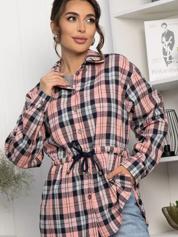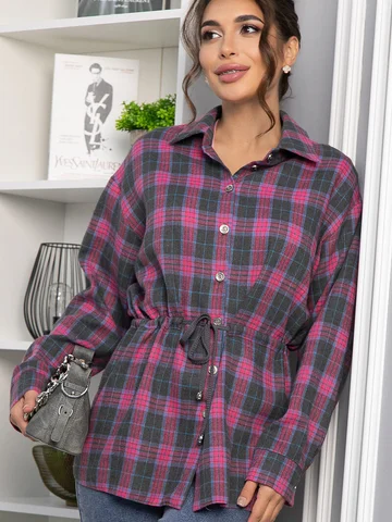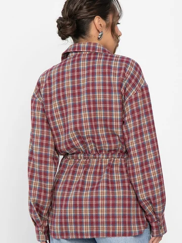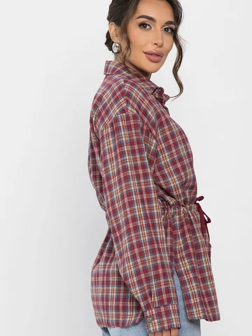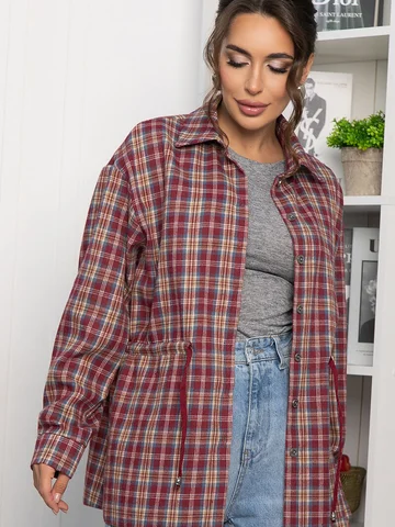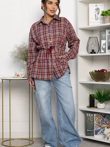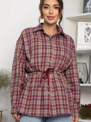 Рубашка в клетку в винном цвете станет стильным акцентом в вашем гардеробе, позволяя экспериментировать с разными образами. Ее можно носить как самостоятельный элемент или использовать в многослойных ансамблях. По бокам есть разрезы. Рубашка с воротником-стойкой и аккуратной застежкой на пуговицы выглядит современно и элегантно. Спущенное плечо добавляет расслабленности, а кулиска на талии подчеркивает фигуру. Создайте свой уникальный стиль с нашей новой клетчатой рубашкой!