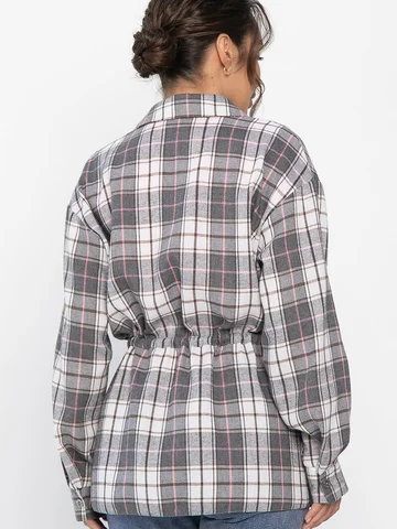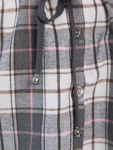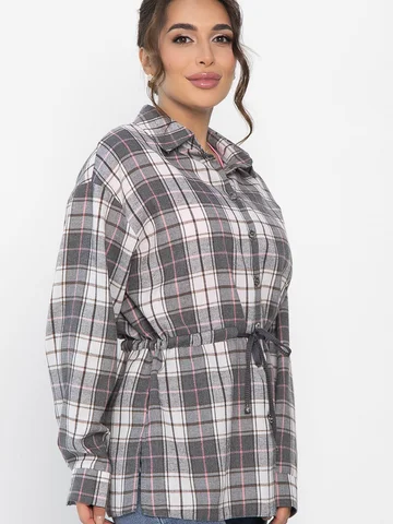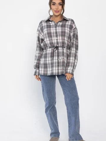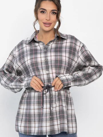 Рубашка в клетку в серо-коричневом цвете станет стильным акцентом в вашем гардеробе, позволяя экспериментировать с разными образами. Ее можно носить как самостоятельный элемент или использовать в многослойных ансамблях. По бокам есть разрезы. Рубашка с воротником-стойкой и аккуратной застежкой на пуговицы выглядит современно и элегантно. Спущенное плечо добавляет расслабленности, а кулиска на талии подчеркивает фигуру. Создайте свой уникальный стиль с нашей новой клетчатой рубашкой!
