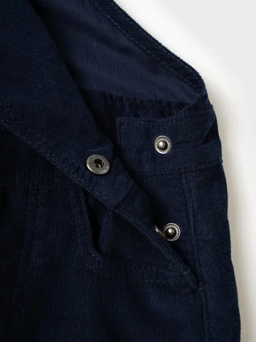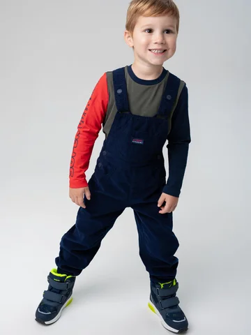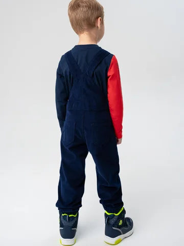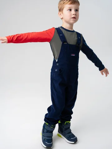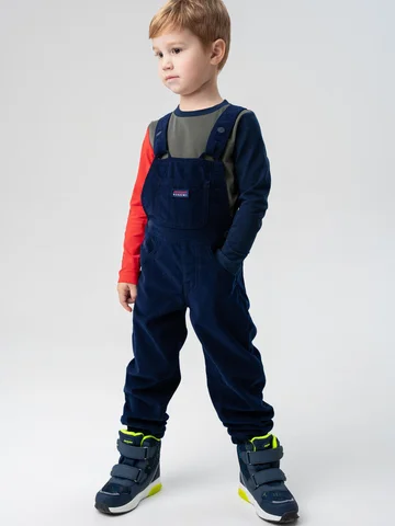 Выполнен из мягкого синего вельвета средней плотности с теплой флисовой подкладкой — комбинезон надежно защищает от холода, оставаясь при этом комфортным и приятным к телу. Материал устойчив к износу и легко переносит активную носку.