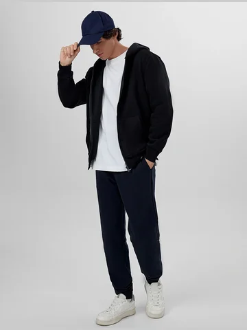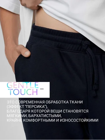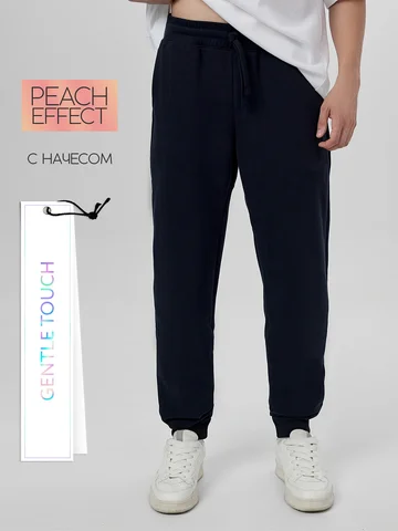Стильные брюки из трикотажного футера с теплым подчесом. Силуэт зауженный, штанины с манжетами. Есть удобные боковые карманы. В поясе – эластичная тесьма и шнурок-затяжка. Просто, комфортно, актуально!