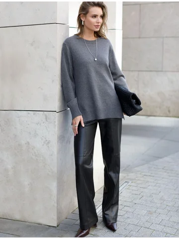 Джемпер с круглым воротом выполнен из мягкой меланжевой пряжи с кашемиром. Лаконичная модель свободного силуэта дополнена боковыми разрезами. Мягкая пряжа очень приятная к телу, поддержит комфорт на протяжении всего дня. Сочетается в костюме с брюками D38.013, D38.012 и юбкой D36.016