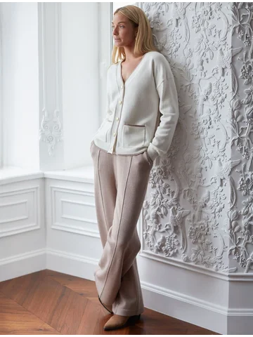 Брюки свободного силуэта выполнены из мягкой пряжи с кашемиром. Вязаный кант вертикально проходящий по всему изделию, визуально стройнит и вытягивает силуэт. Изделие дополнено боковыми карманами и регулирующим шнуром на поясе. Мягкая пряжа очень приятная к телу, поддержит комфорт на протяжении всего дня, при этом не перегревая. Сочетается в костюме с D31.141, D31.147, D31.148, D31.149, D34.202, D34.203, D34.205, D34.206, D37.017, D37.018, D39.358, D39.359, D39.360