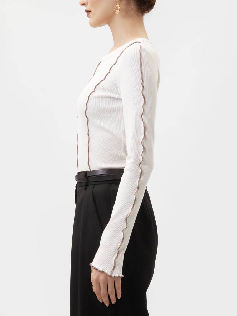 Лонгслив женский облегающий – базовая вещь в осеннем гардеробе. Пошив трикотажного лонга визуально утягивает, создает приталенного силуэта. Декоративные швы наружу делают его уникальность. Он отлично сочетается с вечерними образами. Легко комбинируется с другими предметами одежды, будь то джинсы или юбки. Подходит как для девочек подросток, так и для девушек и женщин. Мягкий хлопок комфортен к коже, гарантируя уют в осенний сезон. Лонгслив не только обеспечивает необходимое тепло, но и поддерживает актуальный y2k стиль, что особенно порадует любителей моды. Его приталенная форма помогает подчеркнуть фигуру благодаря качественному трикотажу и скрою с обтяжкой. Особенностью этой кофты являются наружные швы: добавляя интересный визуальный акцент и подчеркивая уникальность стиля. Она подходит как для создания многослойных луков на прохладное время года, так и в качестве самостоятельного элемента наряда. Ткань из рубчика создает приятную текстуру на ощупь и визуально привлекает внимание благодаря плотности материала. Обтягивающая модель лонга гармонично сочетается с аксессуарами различной направленности – от повседневных до более неформальных. Эта находка для тех, кто ценит комфорт и стиль одновременного без ущерба предназначению вещи. Уважаемые покупатели! При заказе данной модели учитывайте пожалуйста, что декоративные швы имеют свойство стягивать изделие и оно может маломерить. Если вы сомневаетесь при выборе размера, то рекомендуем заказать лонгслив на размер больше