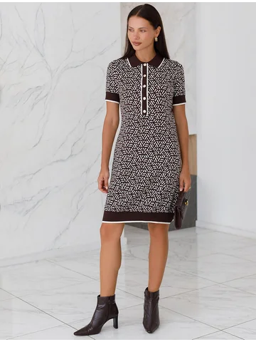 Платье жаккардовой вязки выполнено из нежной пряжи на основе вискозы с добавлением кашемира. Модель прямого силуэта с застежкой планкой как у поло. Фигурные золотистые пуговицы вносят изысканности и роскоши. Изделие приятно ощущается на теле и поддерживает комфортный микроклимат. Сочетается в комплекте total-look с жакетом D31.150
