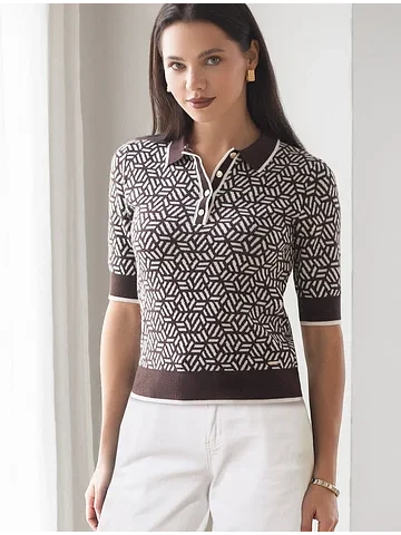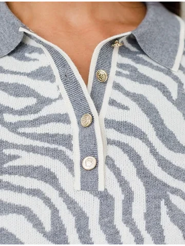 Джемпер жаккардовой вязки выполнено из нежной пряжи на основе вискозы с добавлением кашемира. Модель прямого силуэта с застежкой планкой как у поло. Фигурные золотистые пуговицы вносят изысканности и роскоши. Изделие приятно ощущается на теле и поддерживает комфортный микроклимат. Сочетается в комплекте total-look с жакетом D31.150