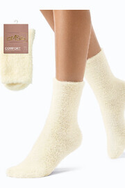 Женские «пушистые» зимние носки. Материал в составе приятно ощущается на теле, отлично сохраняет тепло и создает терморегулирующий эффект. Удобная резинка обеспечивает дополнительный комфорт.