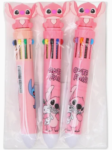 Ручка многоцветная, 10 цветов, 3 шт., «Стич», розовый. Многоцветная ручка с 10 цветами, в розовом корпусе, с фигуркой Эйнджел — яркий и удобный аксессуар для творчества и учебы. Одно нажатие — смена цвета: идеально подходит для заметок, раскрашивания, выделения текста. Качественная паста, гладкое письмо. Фигурка Эйнджел сверху добавляет очарования. Идеальна для девочек — поклонниц Disney. Практично, красочно и по-настоящему мило — пусть каждый день будет ярче!