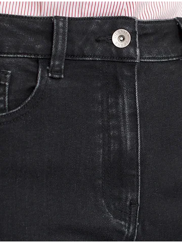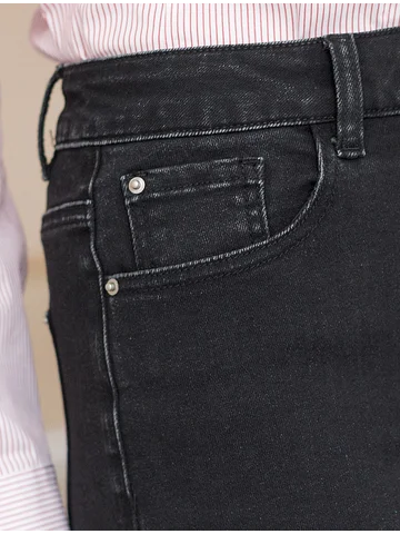 Свободные джинсовые бермуды черного цвета из эластичного денима обеспечивают комфорт и стиль в повседневном образе. Длинные классические шорты с пятью карманами выполнены с широким подгибом по низу и со стрелками по всей длине, что эффектно удлиняет ноги и визуально стройнит силуэт. Правильная посадка и классический фасон подходит как для маленьких, так и для больших размеров. Материал эластичен, благодаря чему шорты отлично садятся по фигуре и не сковывают движения, обеспечивает долговечность изделия, сохраняя первоначальный вид даже после многократных стирок и активного использования. Шорты дополнены качественной фуртитурой и брендированным патчем из эко-кожи на поясе.