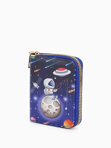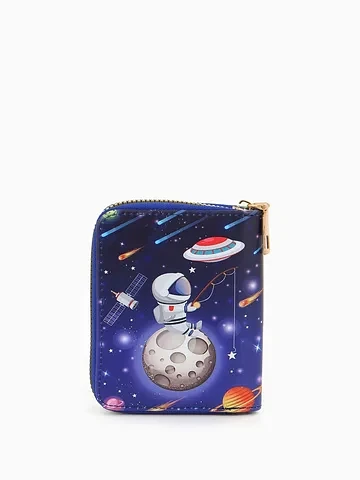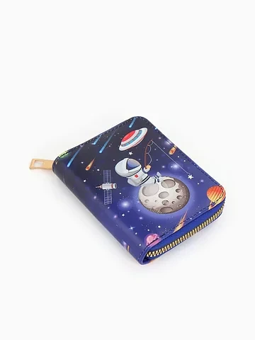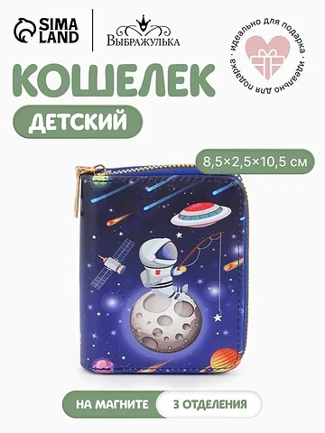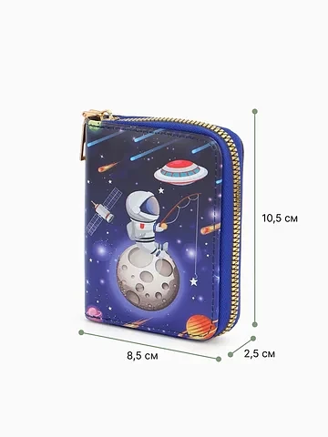 Кошелек на молнии Выбражулька, 8.5×2.5×10.5 см, с принтом, синий. Этот детский кошелек с космическим дизайном станет верным спутником в первых финансовых открытиях. Он надежно хранит монеты и банкноты, приучая к порядку и самостоятельности. Ребенок с радостью будет собирать свои сокровища в этом стильном аксессуаре. Что делает кошелек удобным