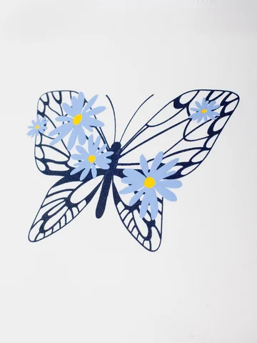 Особое внимание привлекает стильный принт в виде бабочки с цветами. Принт выполнен красками с устойчивым покрытием, который добавляет изделию оригинальности и позволяет выразить индивидуальность.