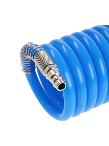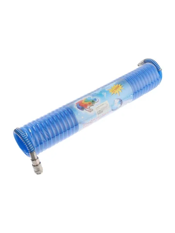 - Спиральная форма из полиэтилена: Шланг растягивается при работе и сжимается при хранении. Сохраняет эластичность при отрицательных температурах и не образует заломов.