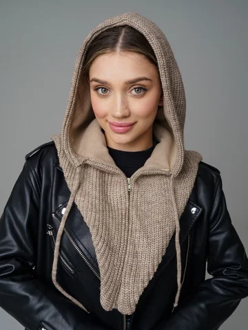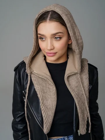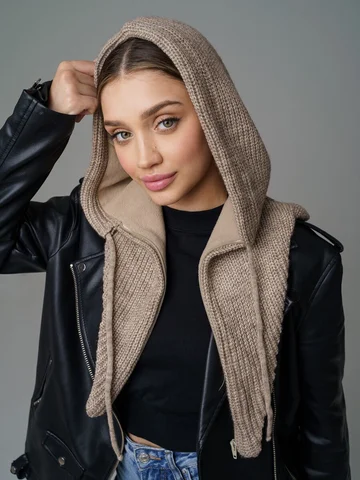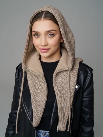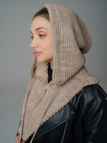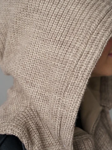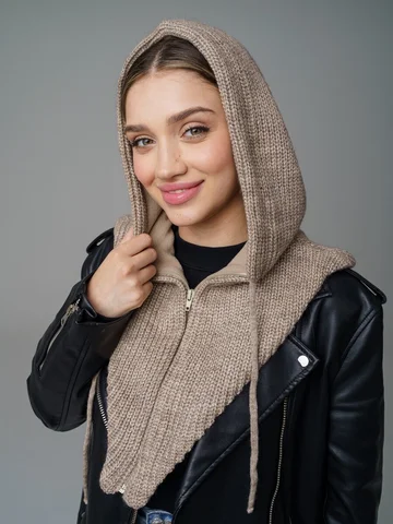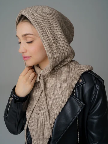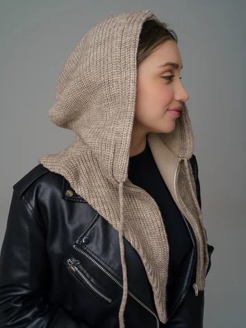 Женский капор из смеси шерсти и акрила с флисовым подкладом обеспечивает тепло, защиту от ветра и комфорт. Мягкий, приятный к коже материал сохраняет аккуратный вид и устойчив к катышкам.
