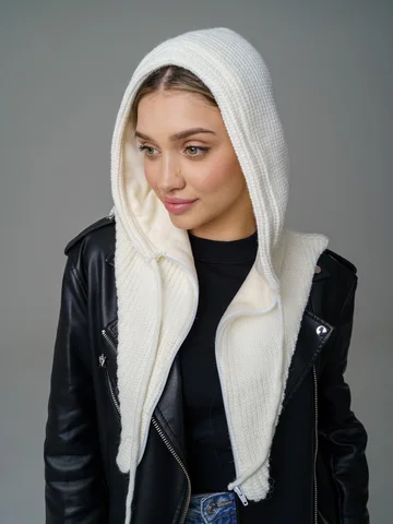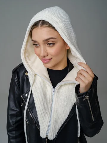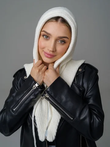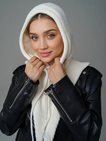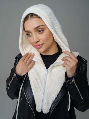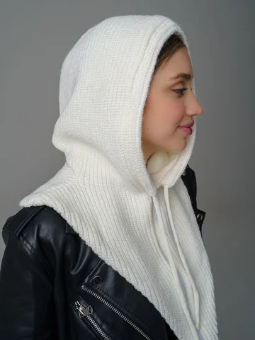 Женский капор из смеси шерсти и акрила с флисовым подкладом обеспечивает тепло, защиту от ветра и комфорт. Мягкий, приятный к коже материал сохраняет аккуратный вид и устойчив к катышкам.