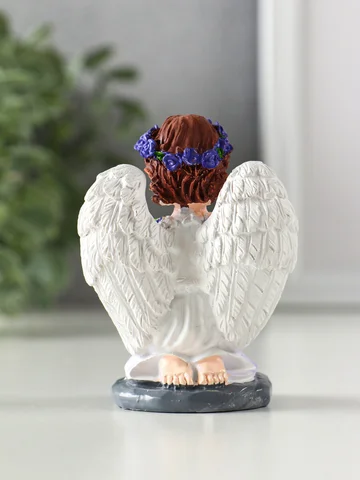 - Проработанный образ: Фигурка изображает девочку-ангела в пышном платье. В руках она держит веточку лаванды. Скульптура передает мельчайшие детали: складки одежды, черты лица, структуру цветов.