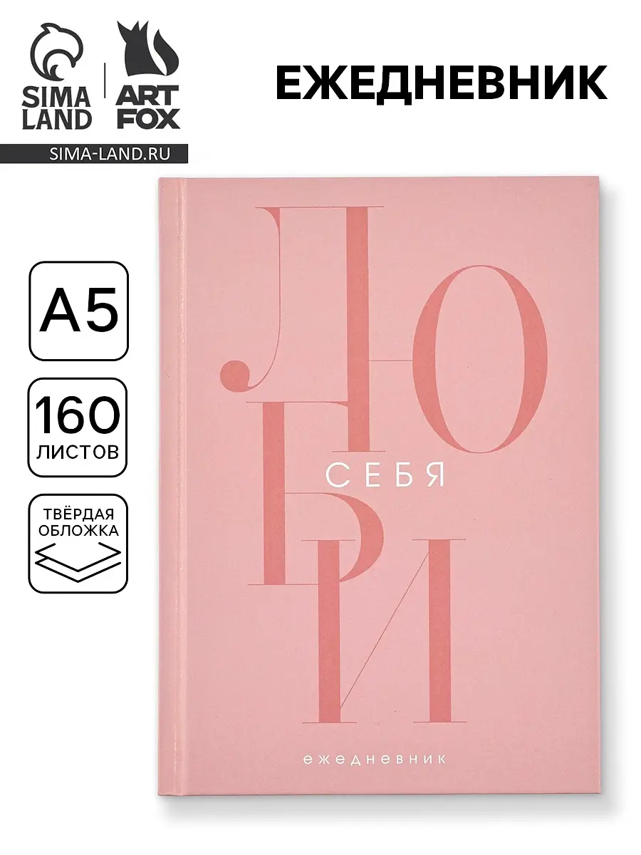 Ежедневник А5, 160 листов, в твердой обложке «Люби себя».