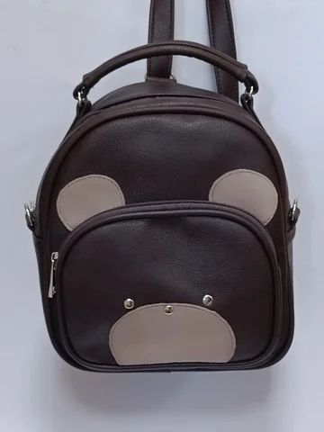 Небольшой детский рюкзак из экокожи, выполненный в виде мишки, с мягкими вставками из велюра.. Ремень перестегивается в 3 положениях - в двух как сумка и как рюкзак. Имеет карманы под сотовый и ключи. Наружный кармашек на молнии. .Цвет изделия и расположение рисунка может незначительно отличаться от фото.Материал: экокожа, подклад: полиэстер.
