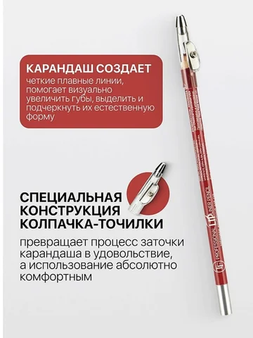 TF Карандаш для губ контурный с точилкой Professional Lipliner Pencil тон 011 красное вино. Карандаш для губ с точилкой применяется в качестве контура или как полноценная замена матовой помаде, обеспечивает высокую устойчивость макияжа и сохраняет яркость цвета в течение дня. Специальная конструкция колпачка-точилки превращает процесс заточки карандаша в удовольствие, а использование абсолютно комфортным. Карандаш c мягкой текстурой и насыщенной формулой, создает четкие плавные линии, помогает визуально увеличить губы, выделить и подчеркнуть их естественную форму.