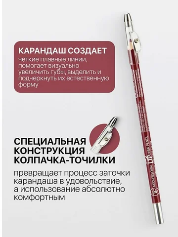 TF Карандаш для губ контурный с точилкой Professional Lipliner Pencil тон 109 слива. Карандаш для губ с точилкой применяется в качестве контура или как полноценная замена матовой помаде, обеспечивает высокую устойчивость макияжа и сохраняет яркость цвета в течение дня. Специальная конструкция колпачка-точилки превращает процесс заточки карандаша в удовольствие, а использование абсолютно комфортным. Карандаш c мягкой текстурой и насыщенной формулой, создает четкие плавные линии, помогает визуально увеличить губы, выделить и подчеркнуть их естественную форму.