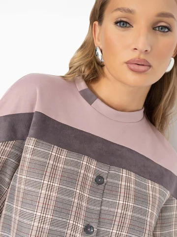 Хочу все и сразу! Мягкий трикотаж понтирома, акценты из эко-замши и клетчатая вставка придают свитшоту сложный, но гармоничный ритм. Просто будь собой – и день сложится идеально. Свитшот свободного кроя в комбинации нескольких видов ткани.