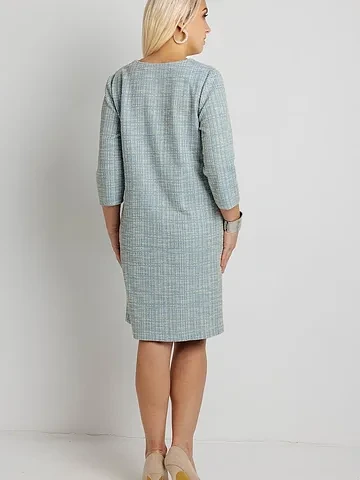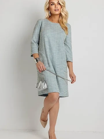 Очень рады, что платье подошло по лекалу и показало все свои лучшие качества: мягкость, легкость и устойчивость к появлению складок. Наличие букле и люрекса придает платью особенную фактуру и игривость. Пусть эта вещь станет ярким пятном в вашем гардеробе и источает счастье при каждой встрече.