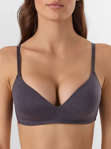 Серый бюстгальтер T-Shirt — идеальный выбор для повседневного комфорта. Модель выполнена из дышащего хлопкового материала, который бережно контактирует с кожей и обеспечивает комфорт в течение всего дня. Формованные чашки без косточек и push-up эффекта мягко поддерживают грудь, создавая естественную форму без стеснения движений. Удобные широкие бретели не врезаются в плечи, а эластичная спинка обеспечивает идеальную посадку.