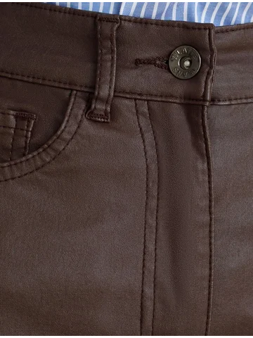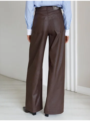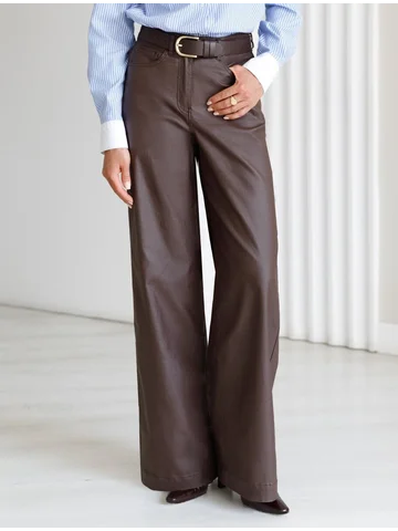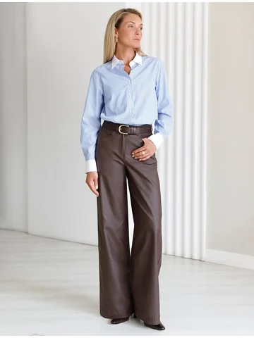 Универсальная модель для базового гардероба. Прямой свободный крой по всей длине создает сдержанный силуэт, идеальный для офиса и повседневной носки. Плотный хлопок с эффектом кожи обеспечивает комфорт и элегантный внешний вид. Классическая высота пояса гарантирует удобство, а минималистичный дизайн делает эти брюки отличной основой для деловых образов. Сочетайте с рубашками и жакетами для офиса или с простыми топами для повседневного стиля. Практичный материал сохраняет форму и не требует особого ухода. Коричневый цвет легко впишется в любой гардероб.
