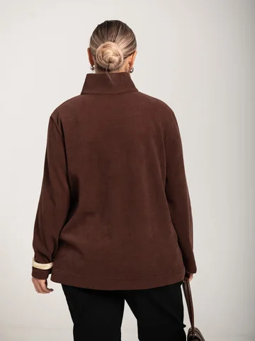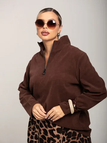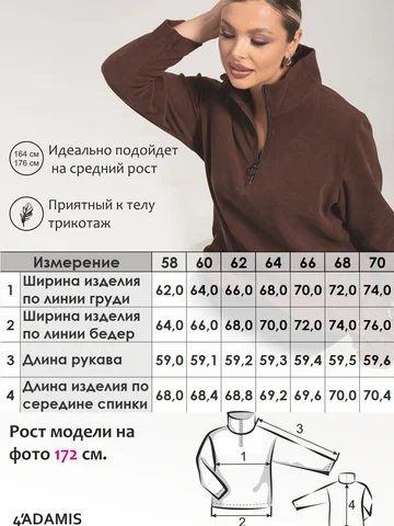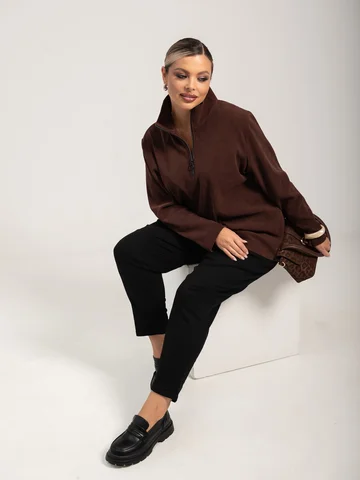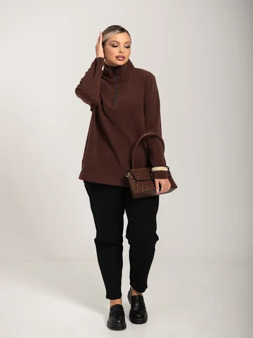 Универсальный свитер оверсайз прямого силуэта из мягкого объемного трикотажного полотна. Модель выполнена длиной до линии бедер. Круглый вырез горловины оформлен удобным воротником - стойкой с молнией. Воротник согреет в прохладную погоду и не вызовет дискомфорта, так как расположен далеко от шеи. Рукава длинные. Такая кофта с воротником - поло является трендом сезона. Еще одним плюсом такого воротника будет сохранение тепла в застегнутом виде, что особенно необходимо в переменчивую прохладную погоду.