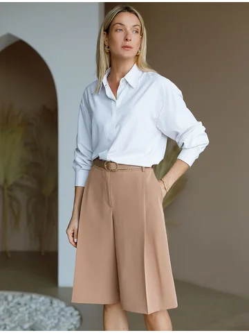 Это юбка-брюки. Широкие, свободные, из мягкой ткани. А хотелось именно шорты, длинные, офисные, хорошо держащие форму. Очень широки в талии.