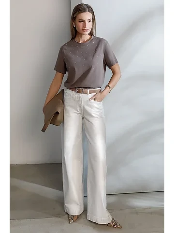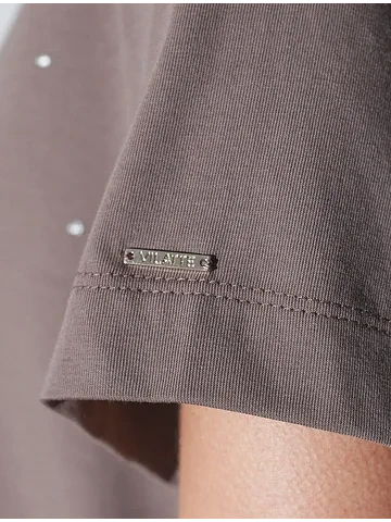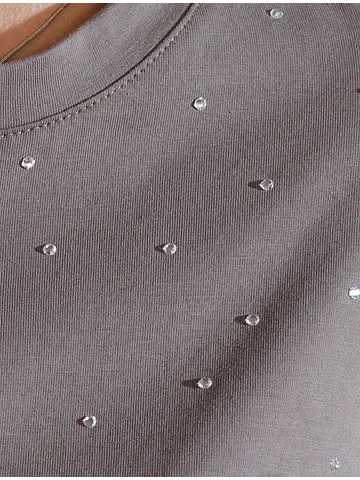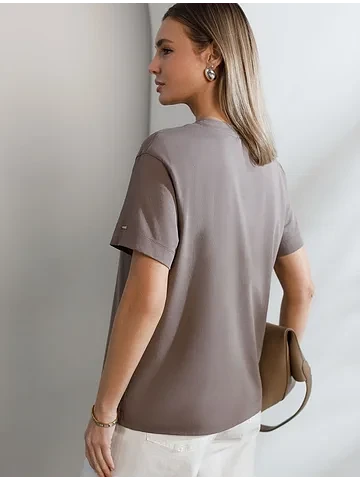 Стильная базовая футболка кофейного цвета с принтом стразами выполнена из плотного хлопка с эластаном для комфортной посадки на любую фигуру. Прямая футболка классического кроя с круглым вырезом, прекрасно подходит для разных типов фигуры, в том числе и на большие размеры. Мягкость хлопка вместе с небольшой долей эластана гарантирует идеальную посадку и свободу движений. Легкая натуральная дышащая ткань премиального качества делает футболку с коротким рукавом идеальным вариантом для повседневной носки дома, на работу или офис. Однотонная футболка дополнена авторским аккуратным принтом, который придает праздничный и элегантный вид без лишней вычурности. Блестящий принт в виде россыпи страз аккуратно украшает, добавляя изысканный акцент и создавая легкий мерцающий эффект.