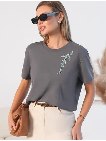 Эта эффектная футболка станет отличным выбором на праздник, подчеркивая образ сияющей и уверенной в себе девушки или женщины. Если вы ищете комфортный и одновременно привлекательный наряд для особых моментов, эта футболка станет надежным решением, подчеркивающим вашу индивидуальность и вкус.