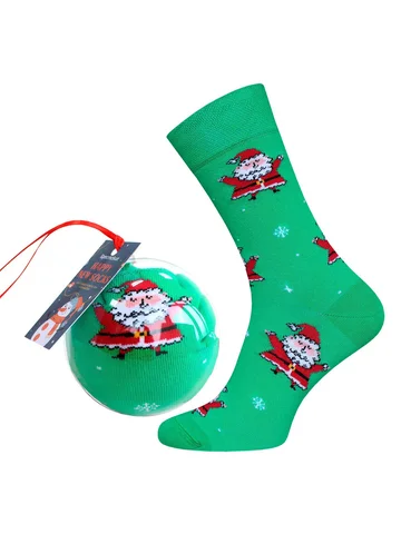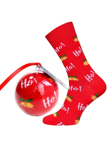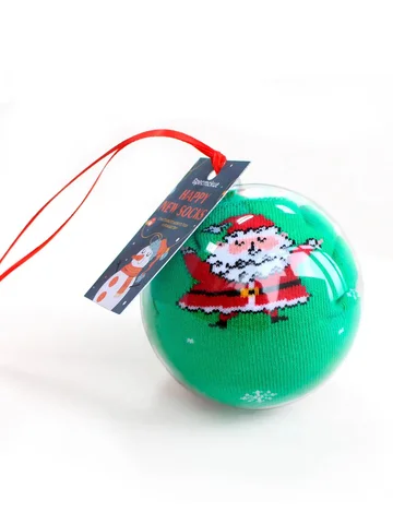 Новогодние женские носки в шаре — оригинальный подарок, который порадует любую девушку или женщину своим необычным оформлением и праздничным настроением. Представляют собой пару красивых уютных носков, упакованных в прозрачный пластиковый шар, имитирующий новогоднюю игрушку. Такой сюрприз выглядит ярко и необычно, вызывая улыбку и приятные эмоции.
