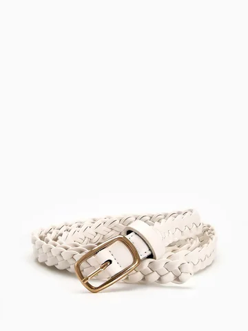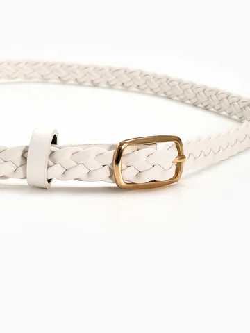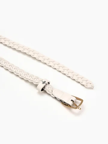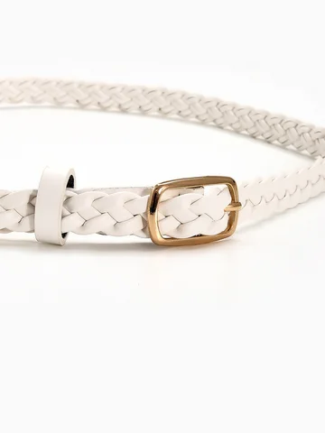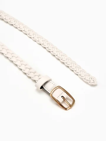 Ремень женский плетеный, 110×1.8 см, пряжка металл, золотистая, белый No brand