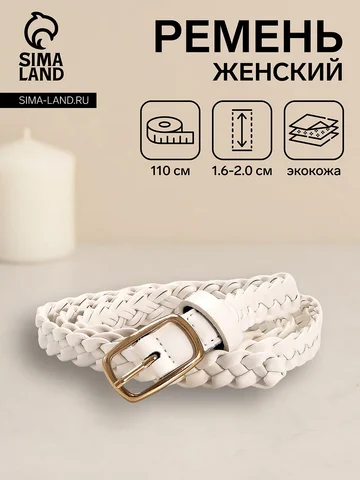Ремень женский плетеный, 110×1.8 см, пряжка металл, золотистая, белый. Белый женский ремень с золотой пряжкой создает ощущение легкости и свежести. Этот аксессуар добавляет образу стилистическую завершенность, мягко выделяя линию талии. С ним даже простой наряд приобретает особое звучание. Особенности