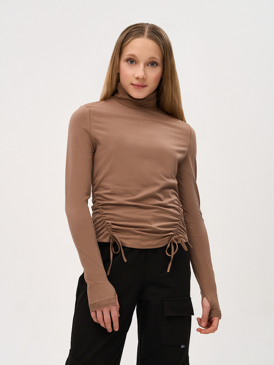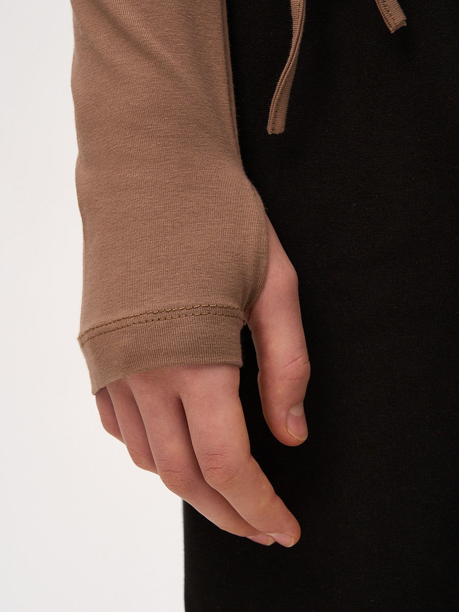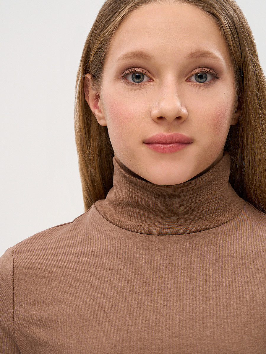Водолазка прилегающего кроя из вязанного полотна, высокий воротник , длинные рукава с отверстием для большого пальца.