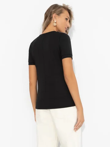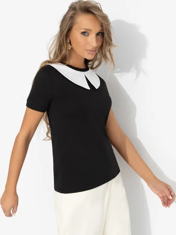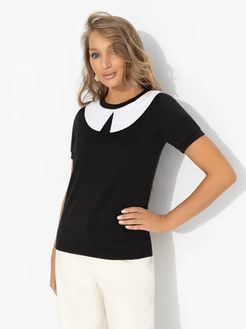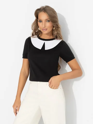 Классика вне времени: контрастный воротник моментально дарит образу вайб Уэнздей Аддамс. Только чуточку поспокойнее. Футболка впишется в любой образ и настроение. Продуманный баланс между строгими линиями и мягкой посадкой. Дизайнеры ЧАРУТТИ снова создали вещь, о которой будут говорить все. Футболка прилегающего силуэта из эластичной ткани. Воротничок не съемный.
