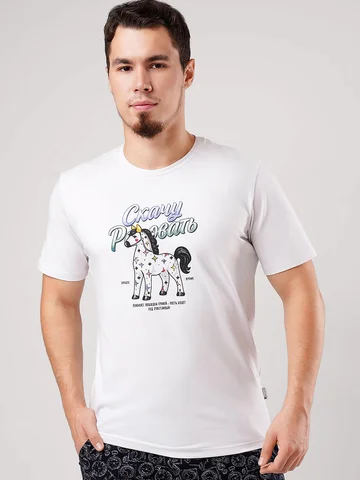 Мужская футболка с коротким рукавом и округлой горловиной. Выполнена из дышащего хлопкового трикотажного полотна с добавлением эластана для прочности. Оригинальность модели придает авторский принт. Создай свой стильный образ вместе с Clever.