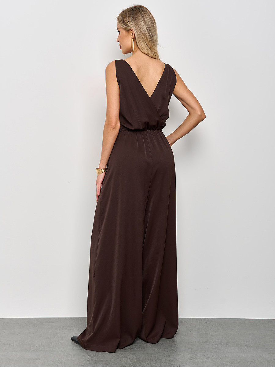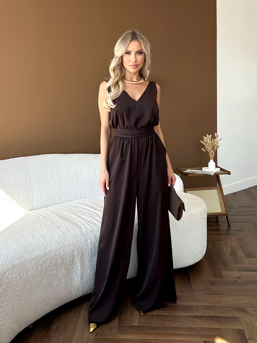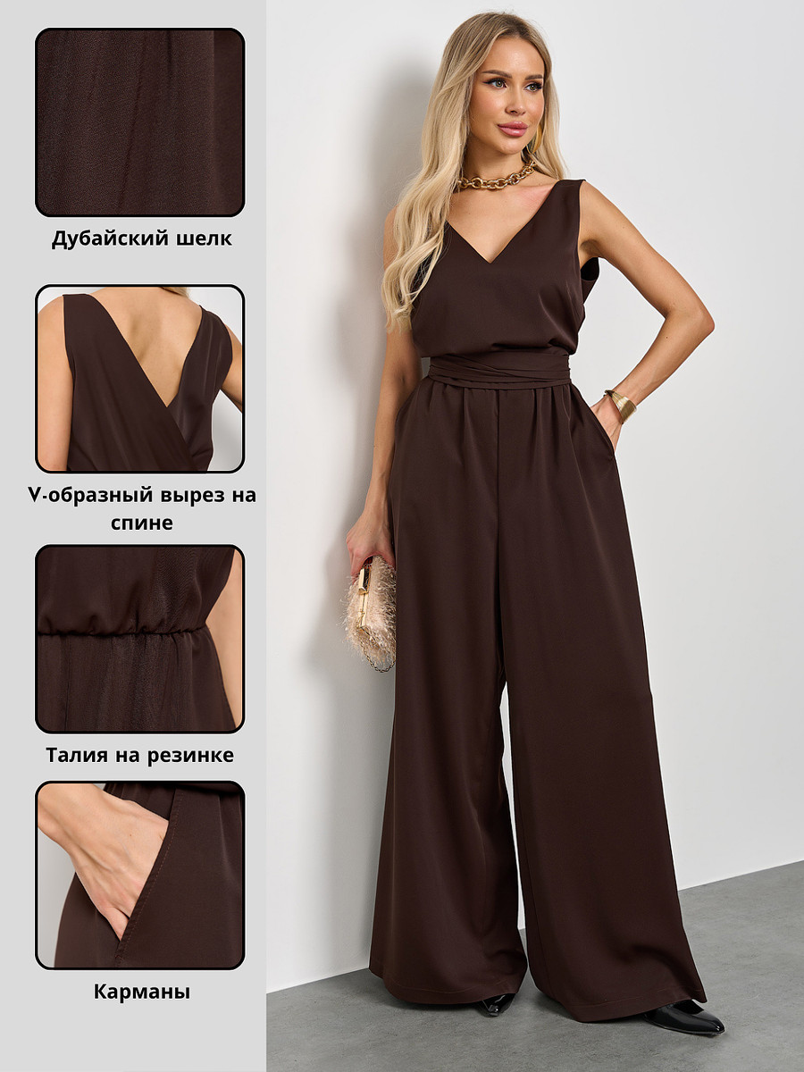 Комбинезон имеет V-образным вырез как спереди, так и на спине, что добавляет легкой интриги и нотки кокетства в ваш образ.