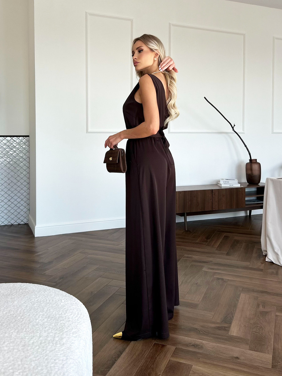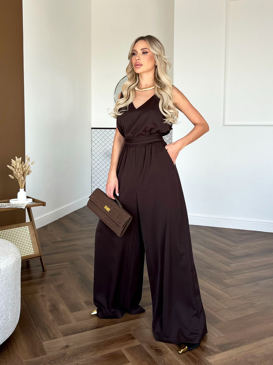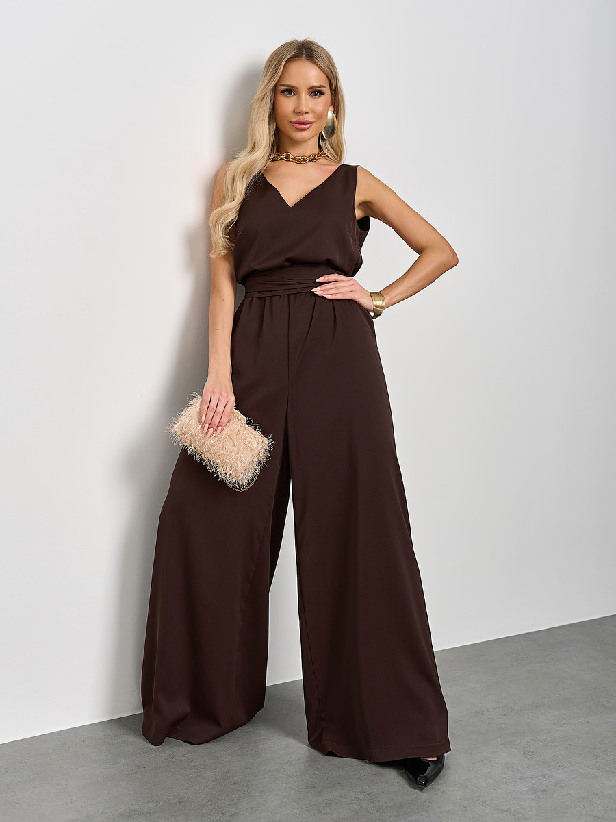 Комбинезон имеет V-образным вырез как спереди, так и на спине, что добавляет легкой интриги и нотки кокетства в ваш образ.