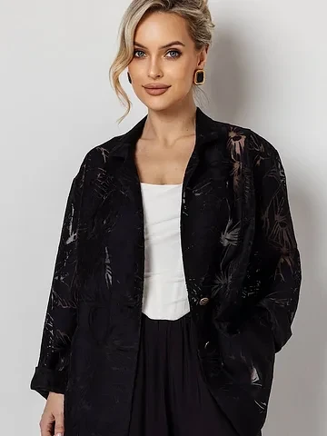 Стильный жакет свободного силуэта. Застежка - пуговица. Жакет представлен до 52 размера с акцентом на комфорт для любого типа фигур.