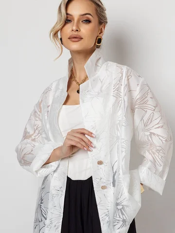 Жакет из органзы. Хорошо держит форму. Ткань , не дает усадку. Благодаря качественному материалу изделие выглядит дорого, качественный пошив, безупречная внутренняя обработка изделия.