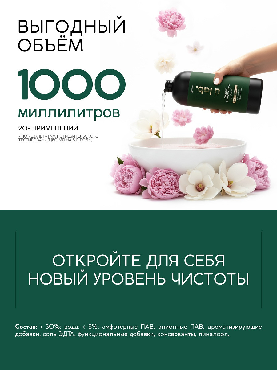 Средство для мытья пола парфюмированное, аромат bright crystal, 1000 мл, ulab URAL LAB