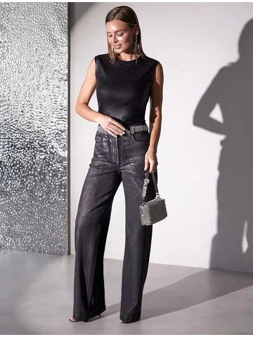 Трендовый матовый металлизированный эффект создает сияющий блеск без излишней яркости — это делает топ нарядным и красивым как для праздничного события, так и для повседневной носки в комплекте с деловым костюмом или джинсами. Широкие лямки обеспечивают дополнительный комфорт в течение всего дня. Круглый ворот подчеркивает линию шеи, добавляя образу изысканности.