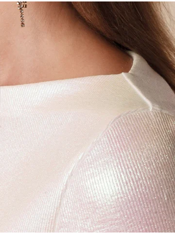 Стильная футболка перламутрового цвета с вырезом лодочка выполнена из премиального хлопка с добавлением эластана. Эффектное матовое покрытие металлик придает футболке изысканный блеск. Вырез лодочка добавляет элегантности и женственности образу. Мелкий рубчик визуально вытягивает силуэт, за счет эластана в составе материал прекрасно тянется и садится на любую фигуру, в том числе большие размеры. Ткань износостойкая, сохраняет свой превоначальный вид даже после многочисленных стирок, отличается мягкостью и приятными тактильными ощущениями, такой материал не раздражает кожу, дарит ощущение уюта даже при длительном ношении, а воздухопроницаемость позволяет коже свободно дышать.