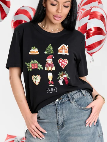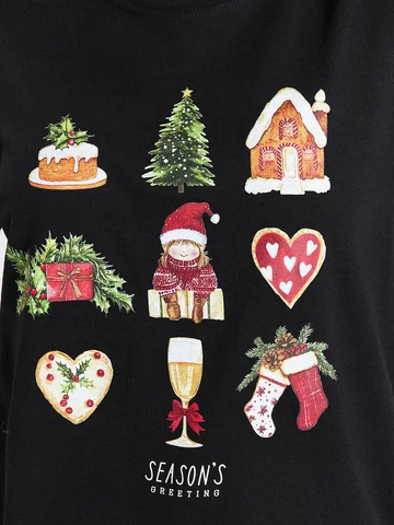 Классическая футболка с круглой горловиной. Новогодний принт спереди создает праздничное настроение!