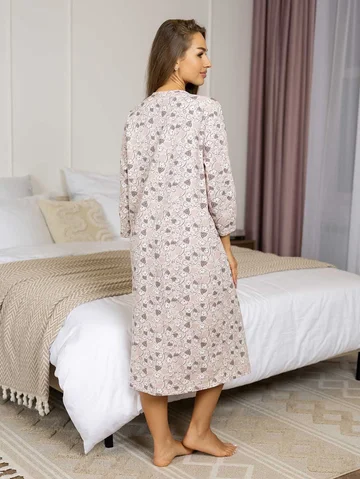 Ночная женская сорочка из футера с начесом, свободного силуэта, длиной ниже колена. Вырез горловины О-образный