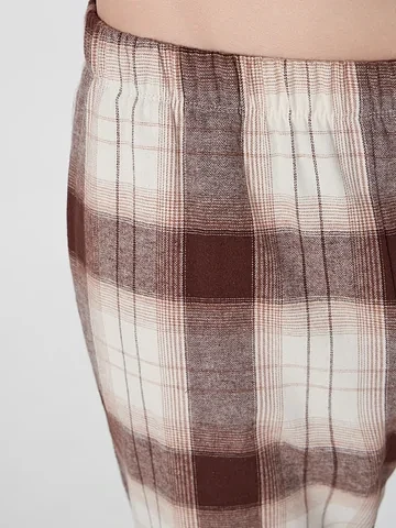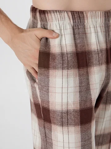 Доминантой дизайна выступает стильная клетка, а тонкое сочетание с полоской придает комплекту особый шарм и визуальную глубину. Мягкая дышащая ткань обеспечивает идеальный микроклимат, делая этот комплект прекрасным выбором для расслабленного вечера или полноценного ночного отдыха в прохладный сезон.