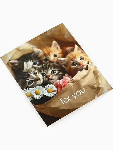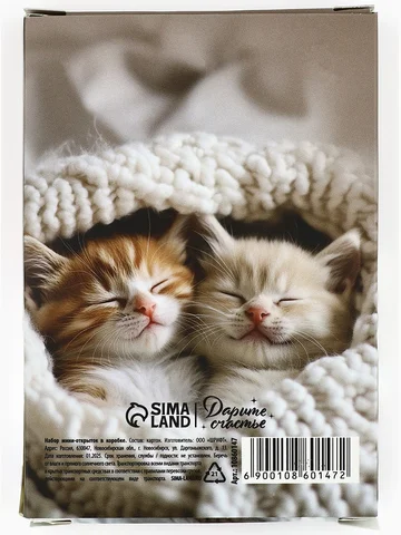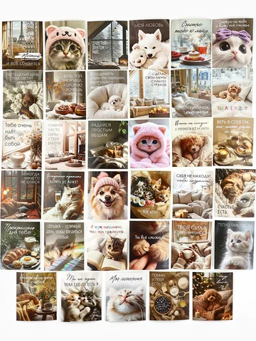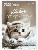 Набор мини-открыток в коробке со скрепками «Котики», 35 штук, 8 x 10 см.